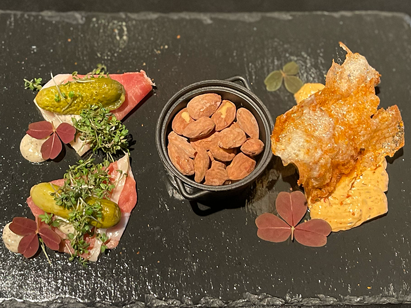 4. Serrano skinke med trøffelmayo og syltede cornichon.