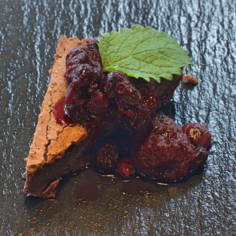 6. Røget andebryst med tyttebærkompot og kartoffelfrit.